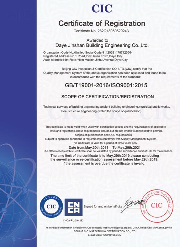 大冶金山建筑工程有限公司是一家專業(yè)從事建筑安裝總承包、園林古建筑、園林綠化景觀工程、文物修繕、市政道路工程、鋼結(jié)構(gòu)工程等綜合型施工企業(yè),公司具有資本投資運營合作實力。
